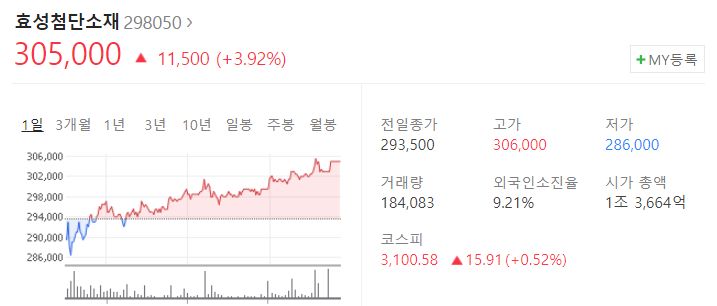 3. 탄소섬유업체 : 효성첨단소재(298050)