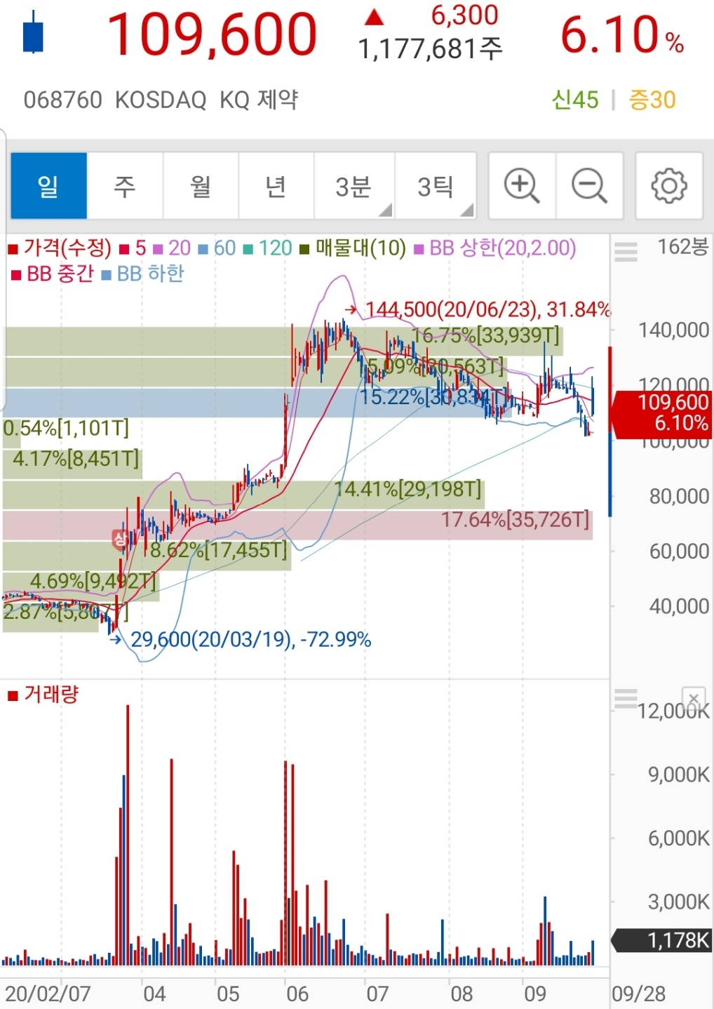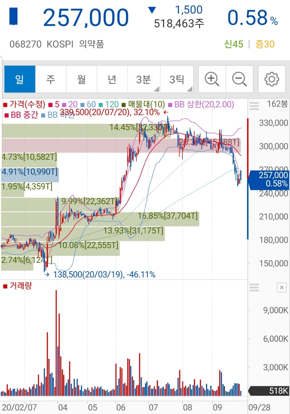 2020년 09월 28일(월) 자 현재 주가를 살펴보시면 아시겠지만 분위기가 그리 좋진 않습니다.